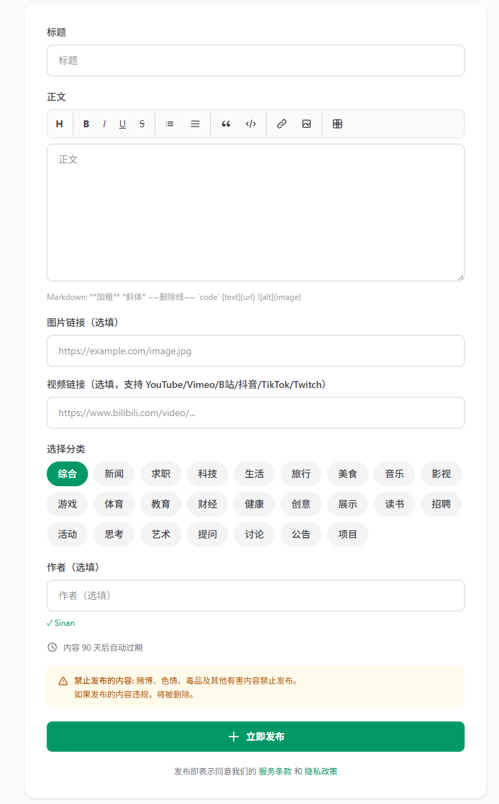 任何人都可以随意发布非禁止信息,无需登录,没有隐私顾虑,只有纯粹的内容分享。并且可以增加链接,图片,视频等内容,获得 dofollow 外链,或者把最终内容页面当做发布页分享给别人看。